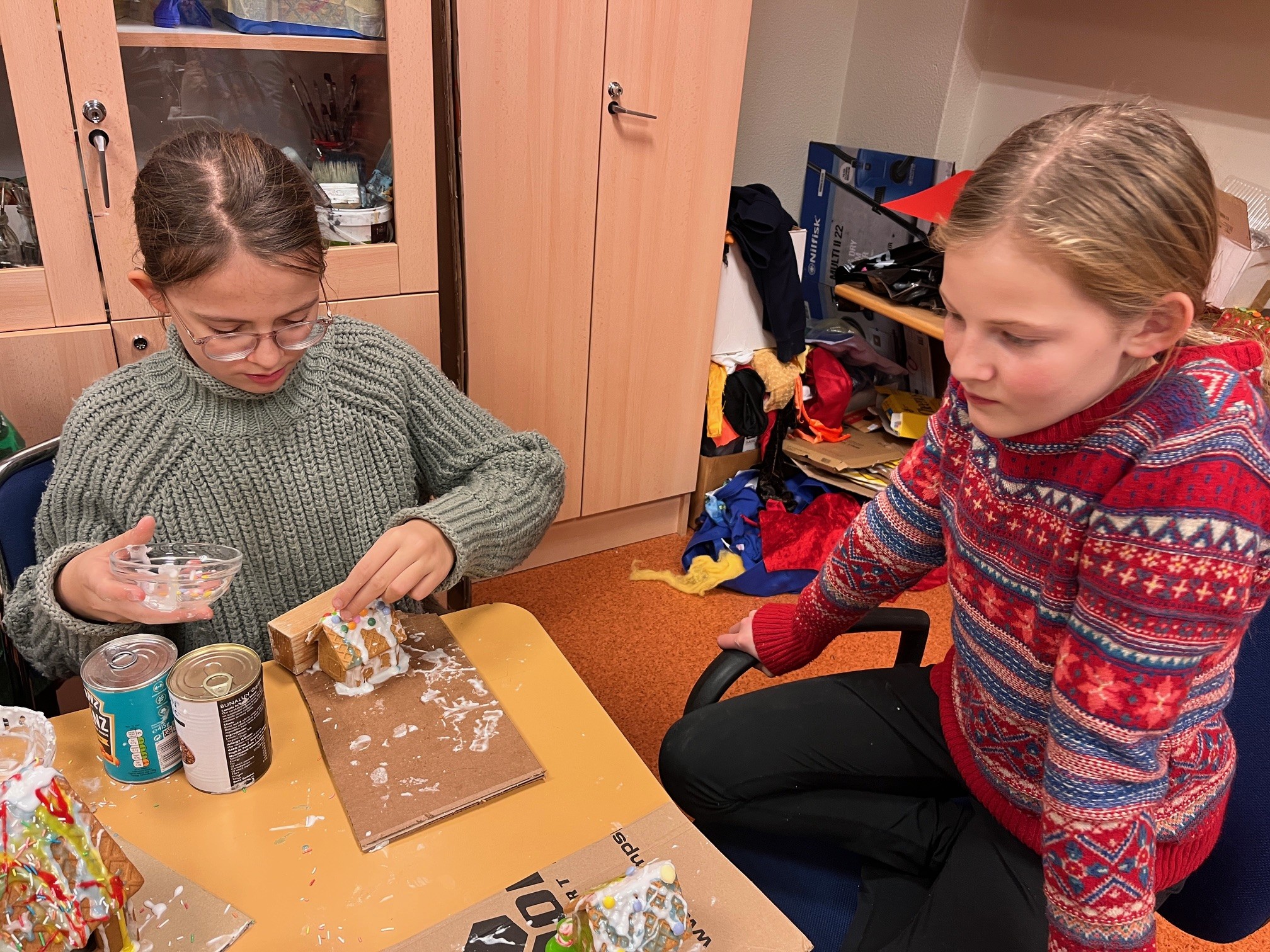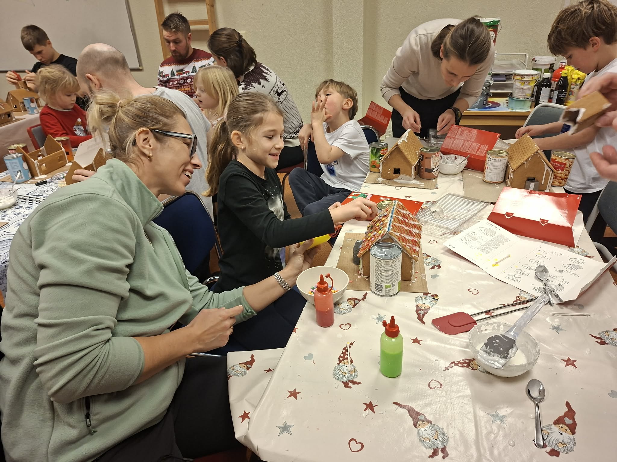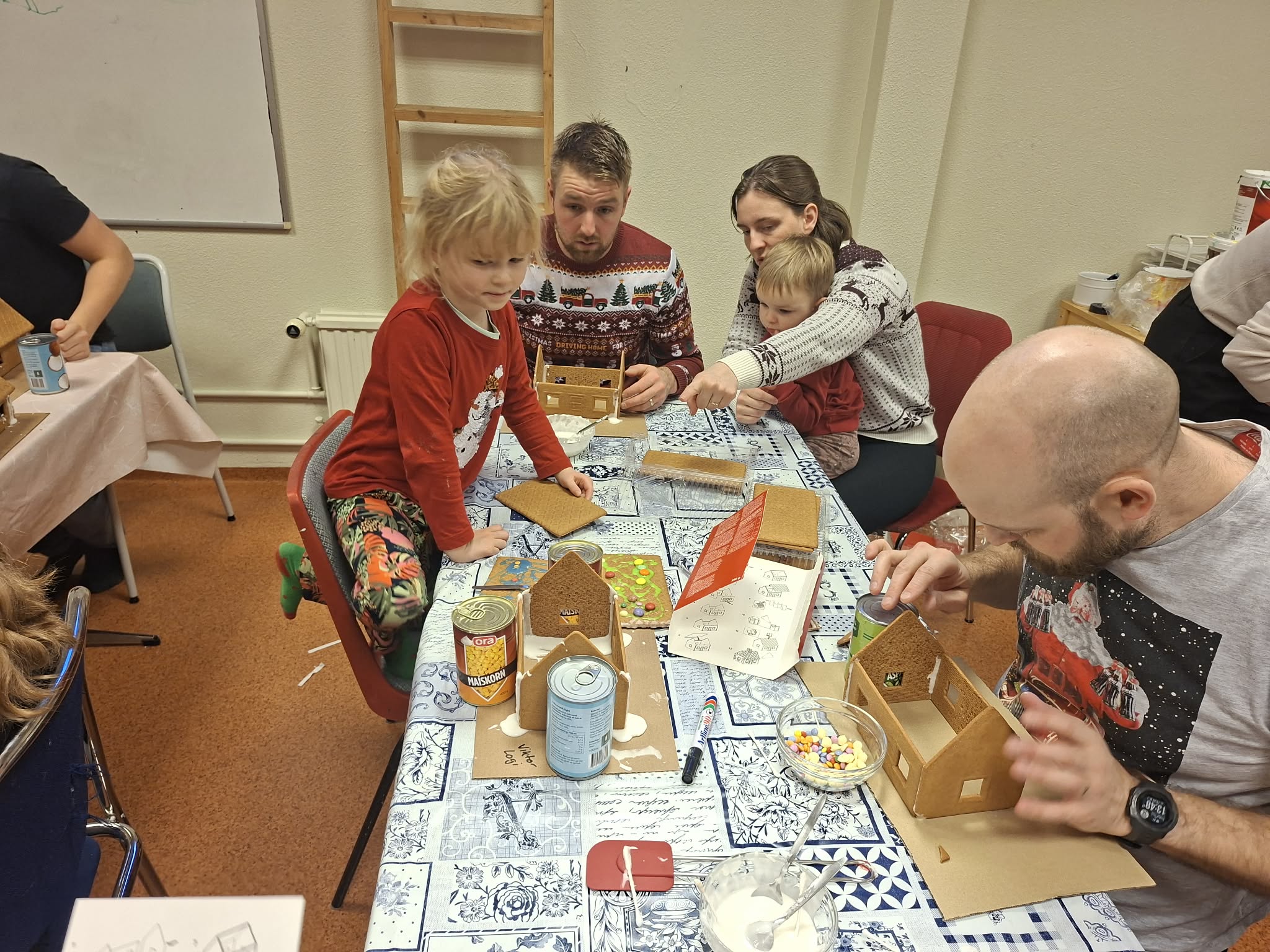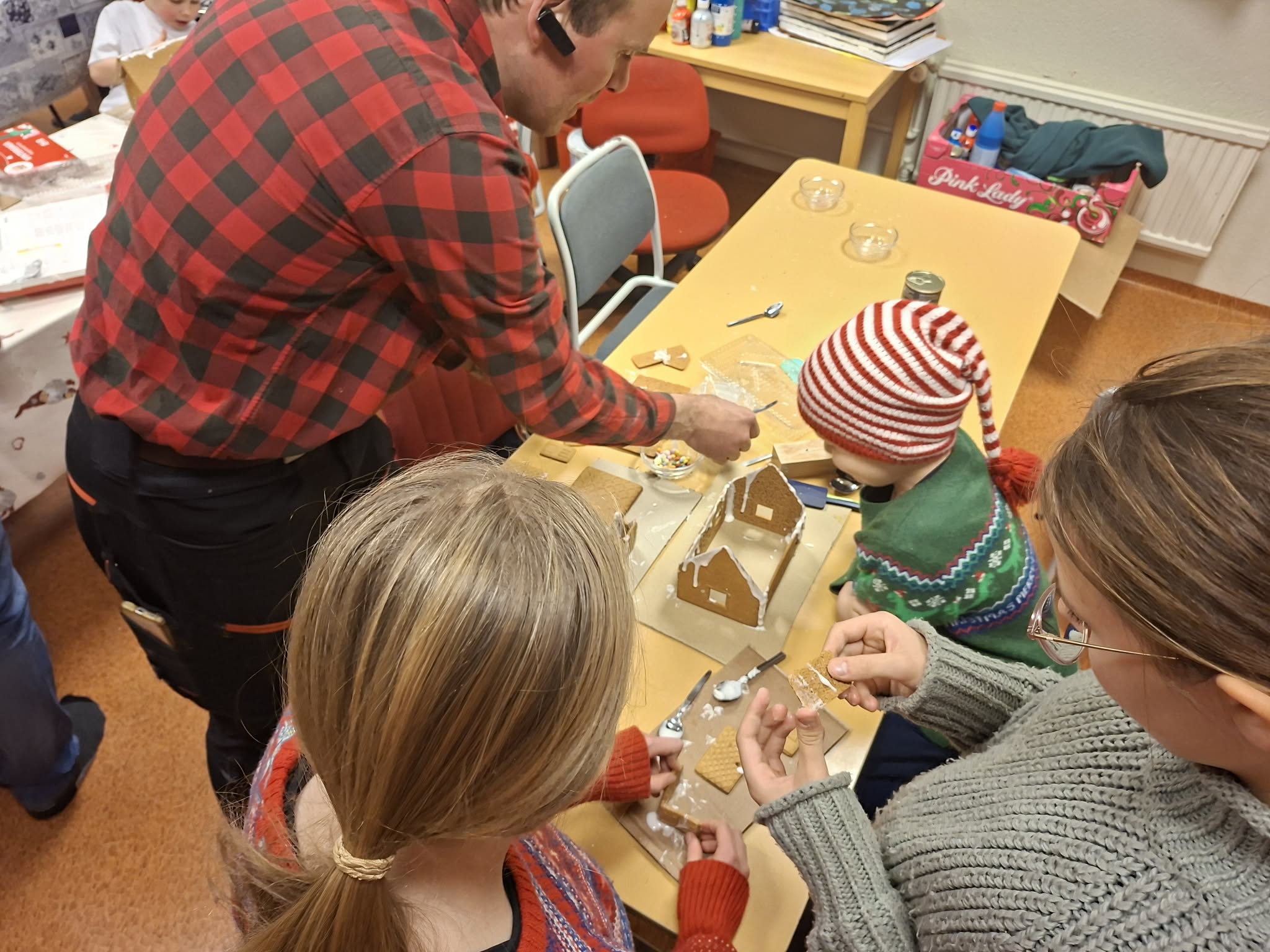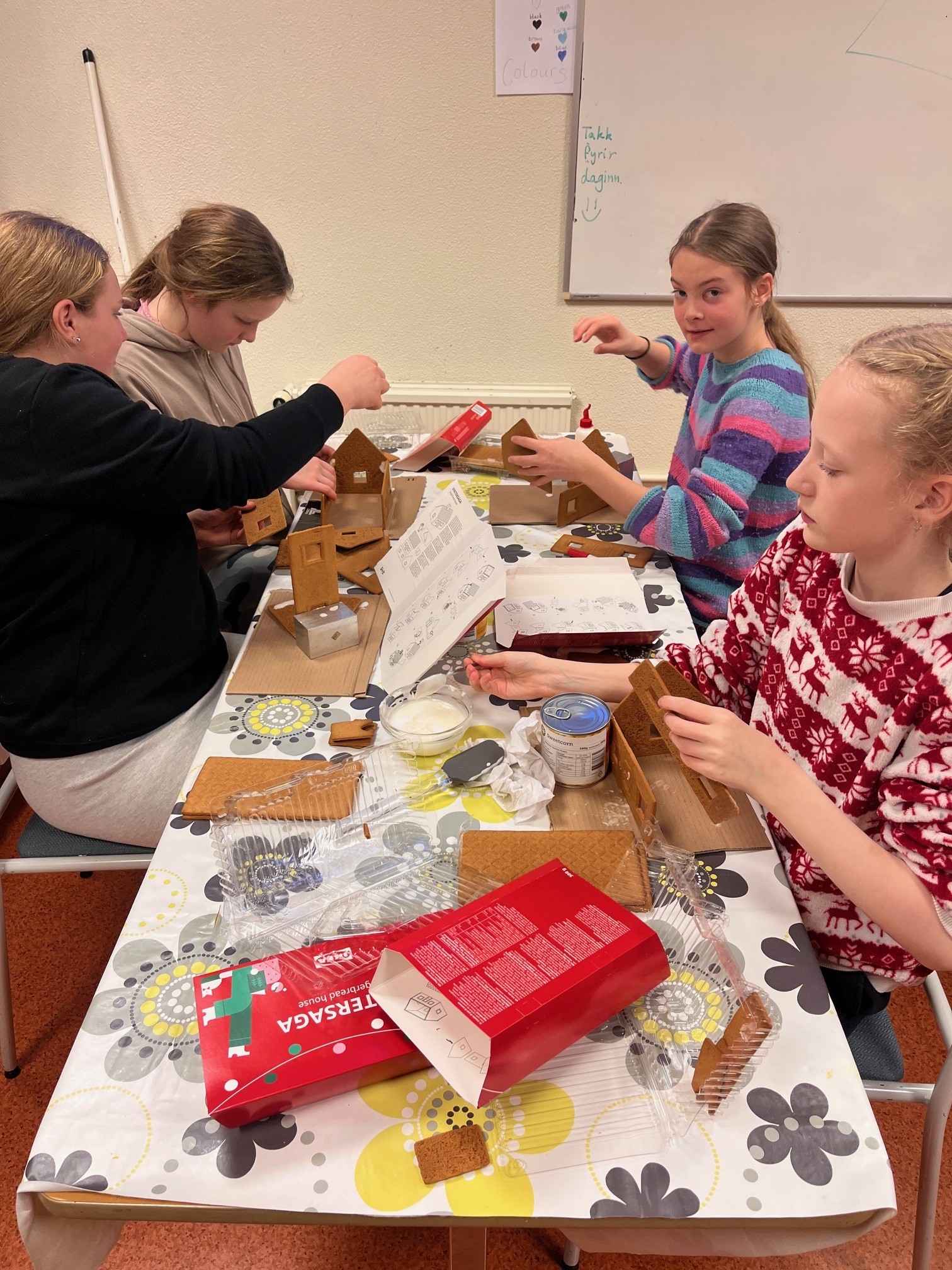Margt skemmtilegt var í boði eins og skreyting piparkökuhúsa sem foreldrafélagið gaf hverjum nemanda skólans, ullarþæfing utan um sápur, jólasveinar og kortagerð.