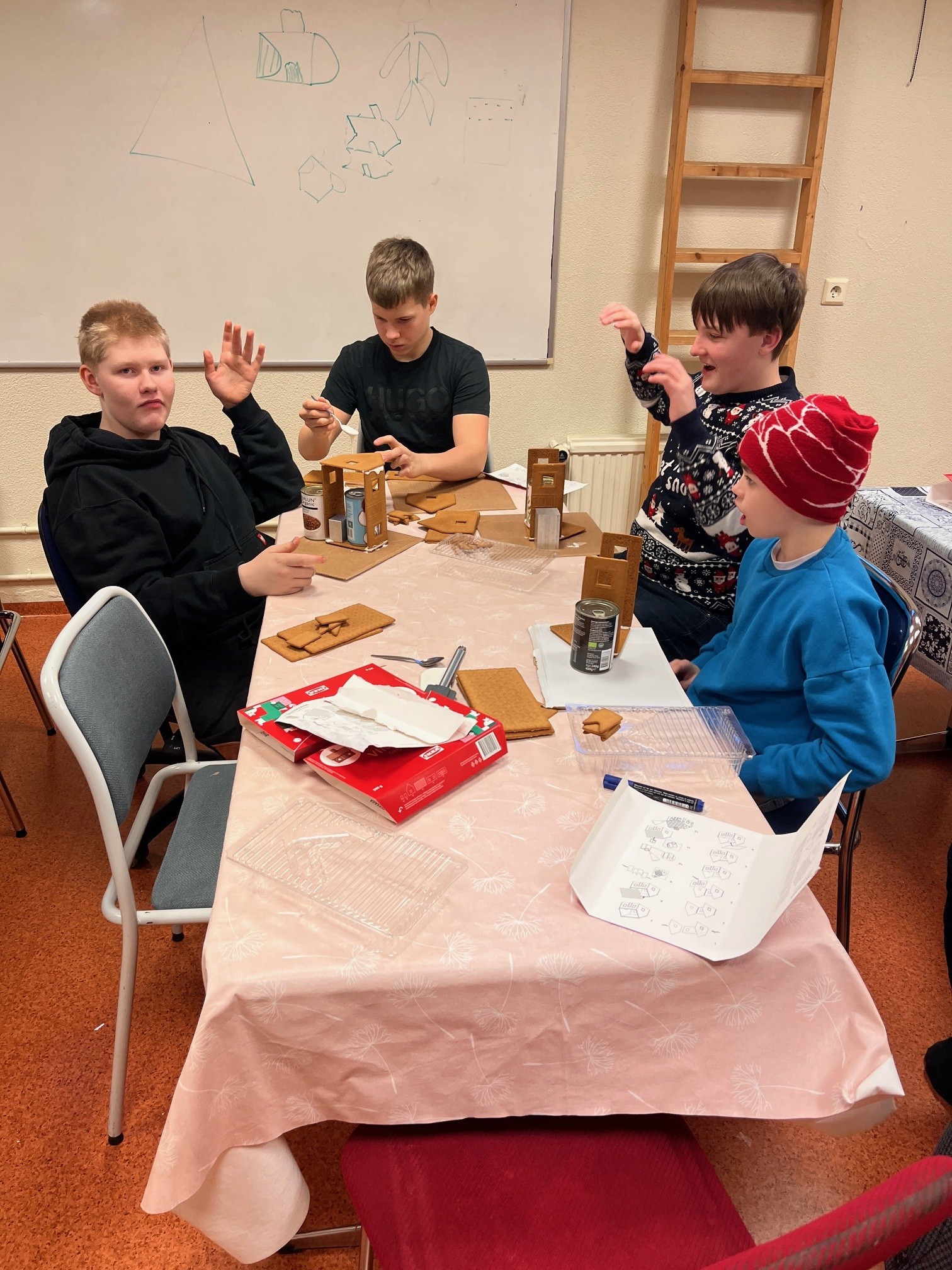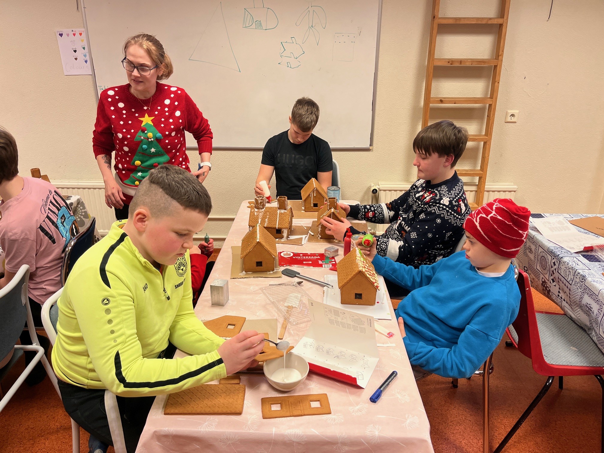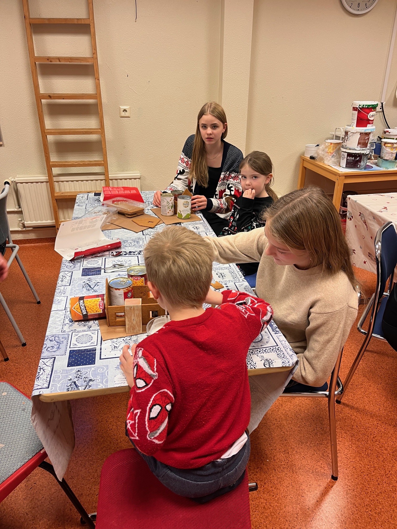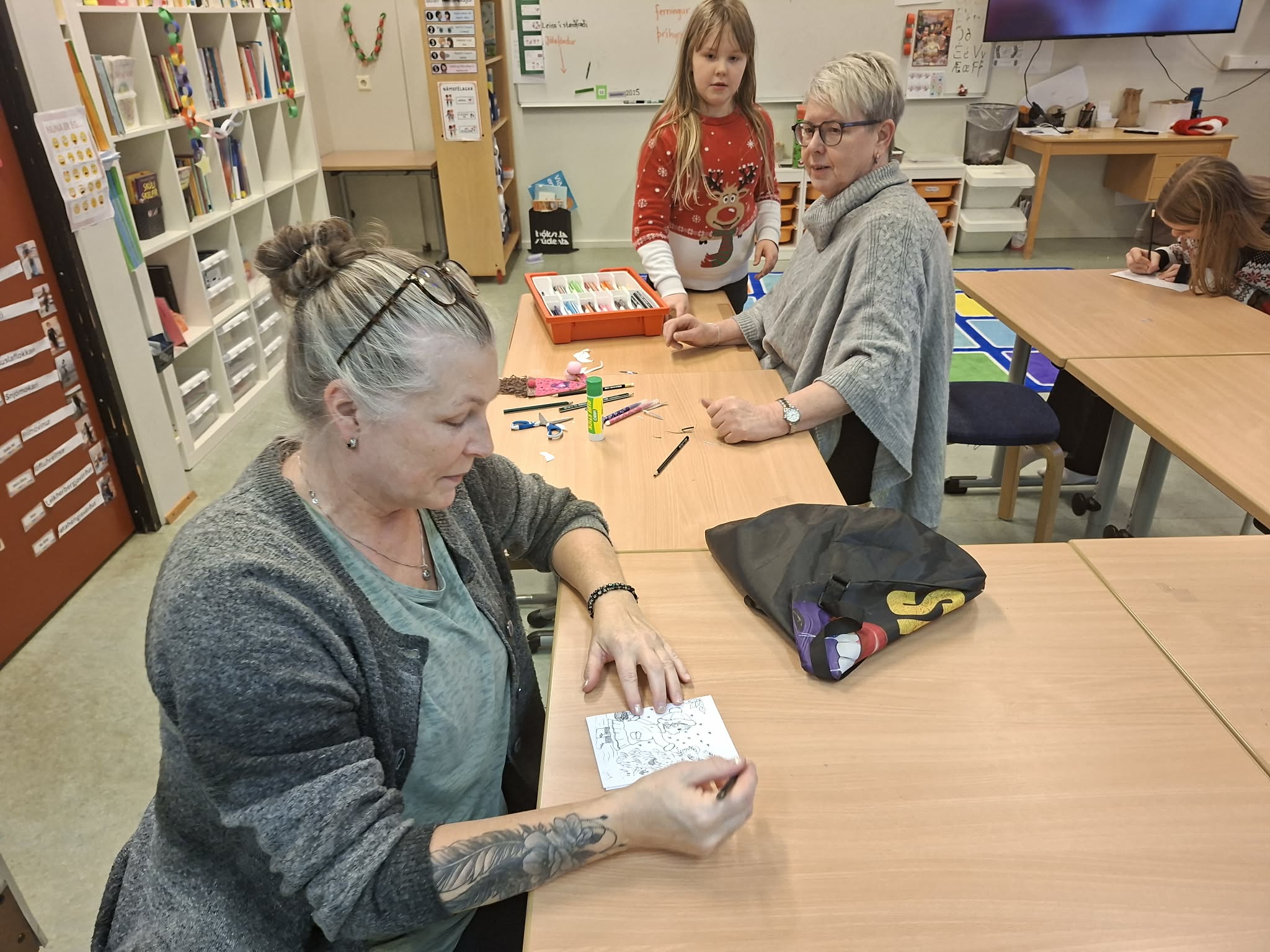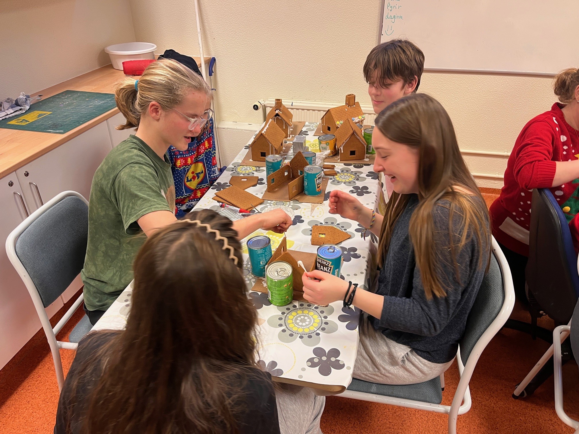 Margt skemmtilegt var í boði eins og skreyting piparkökuhúsa sem foreldrafélagið gaf hverjum nemanda skólans, ullarþæfing utan um sápur, jólasveinar og kortagerð.
