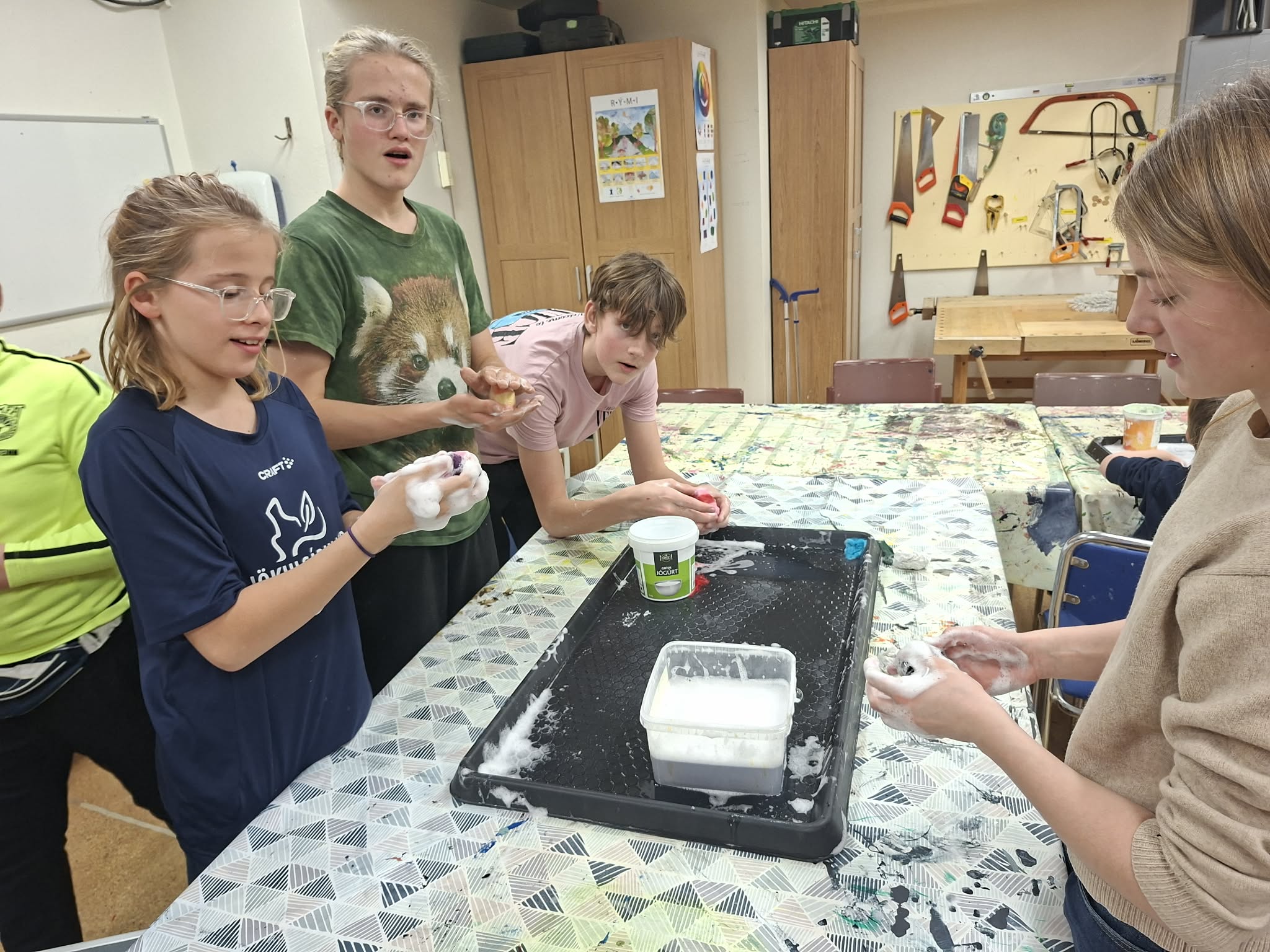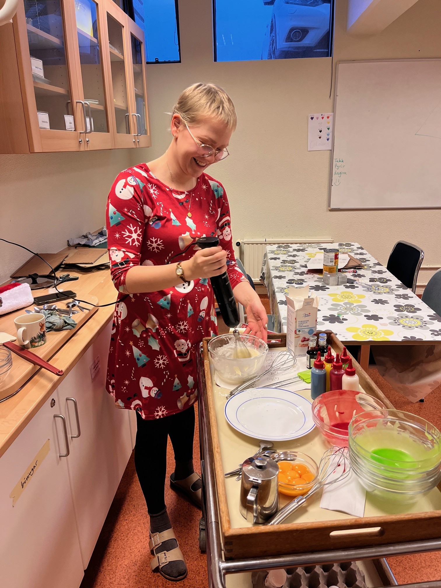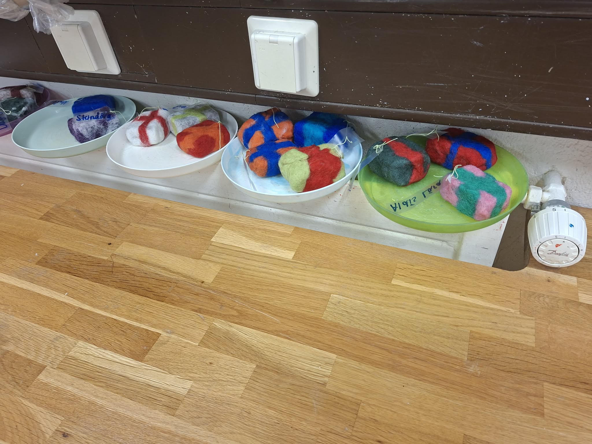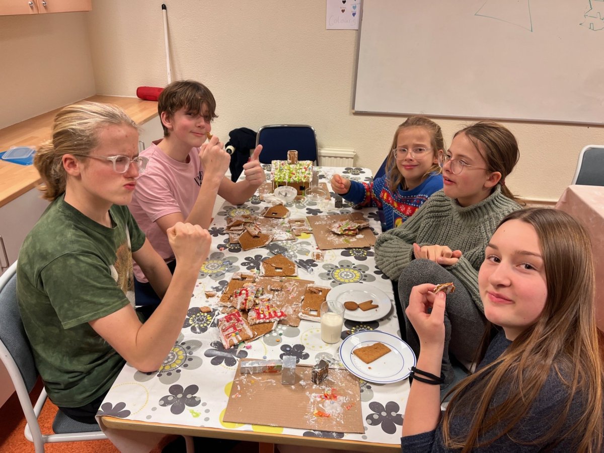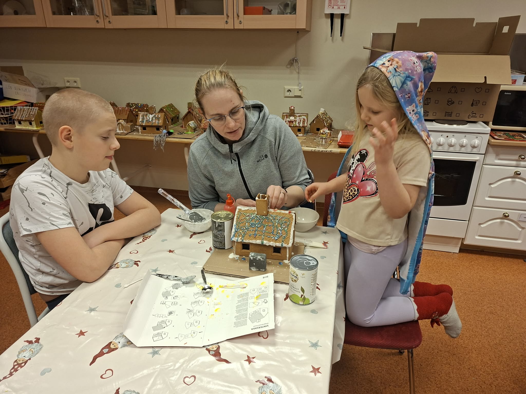 Margt skemmtilegt var í boði eins og skreyting piparkökuhúsa sem foreldrafélagið gaf hverjum nemanda skólans, ullarþæfing utan um sápur, jólasveinar og kortagerð.