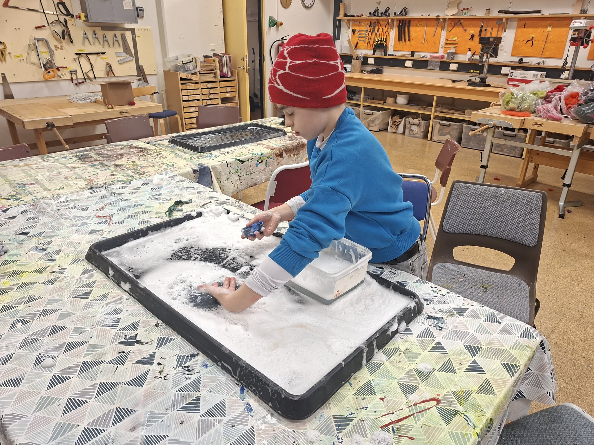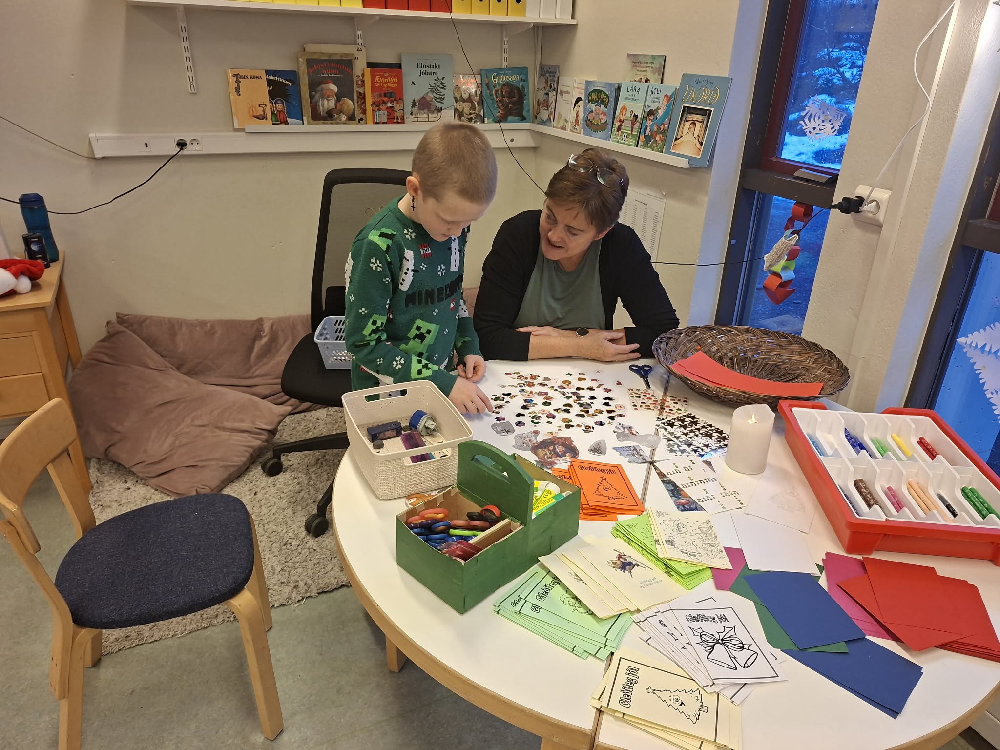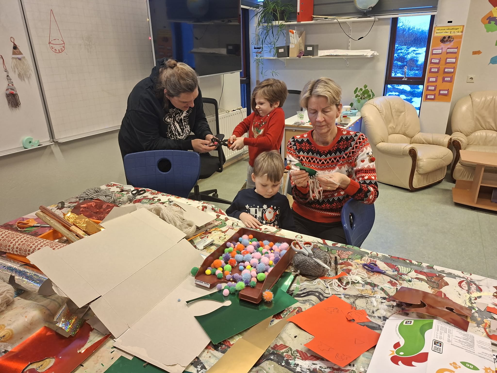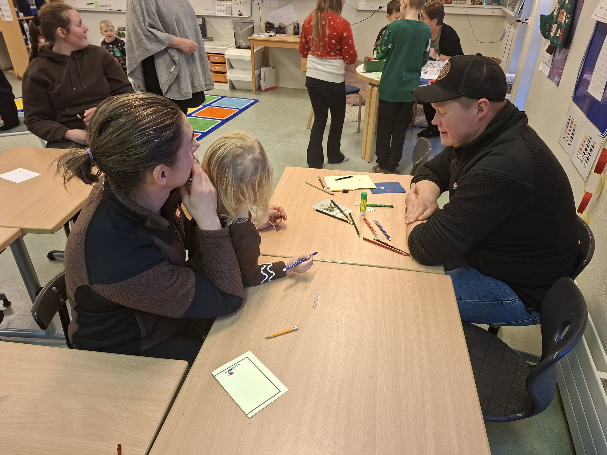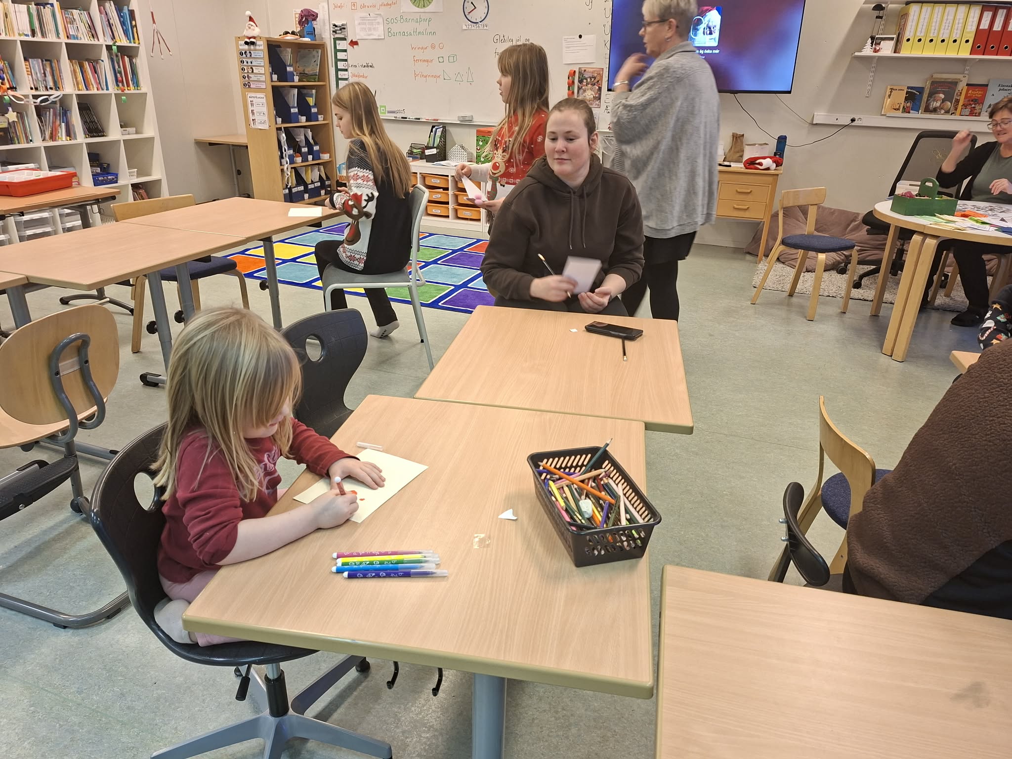 Í gær var haldinn árlegur jólaföndurdagur í skólanum þar sem nemendur, starfsfólk, foreldrar, afar og ömmur komu saman og áttu góða stund við föndur og spjall.