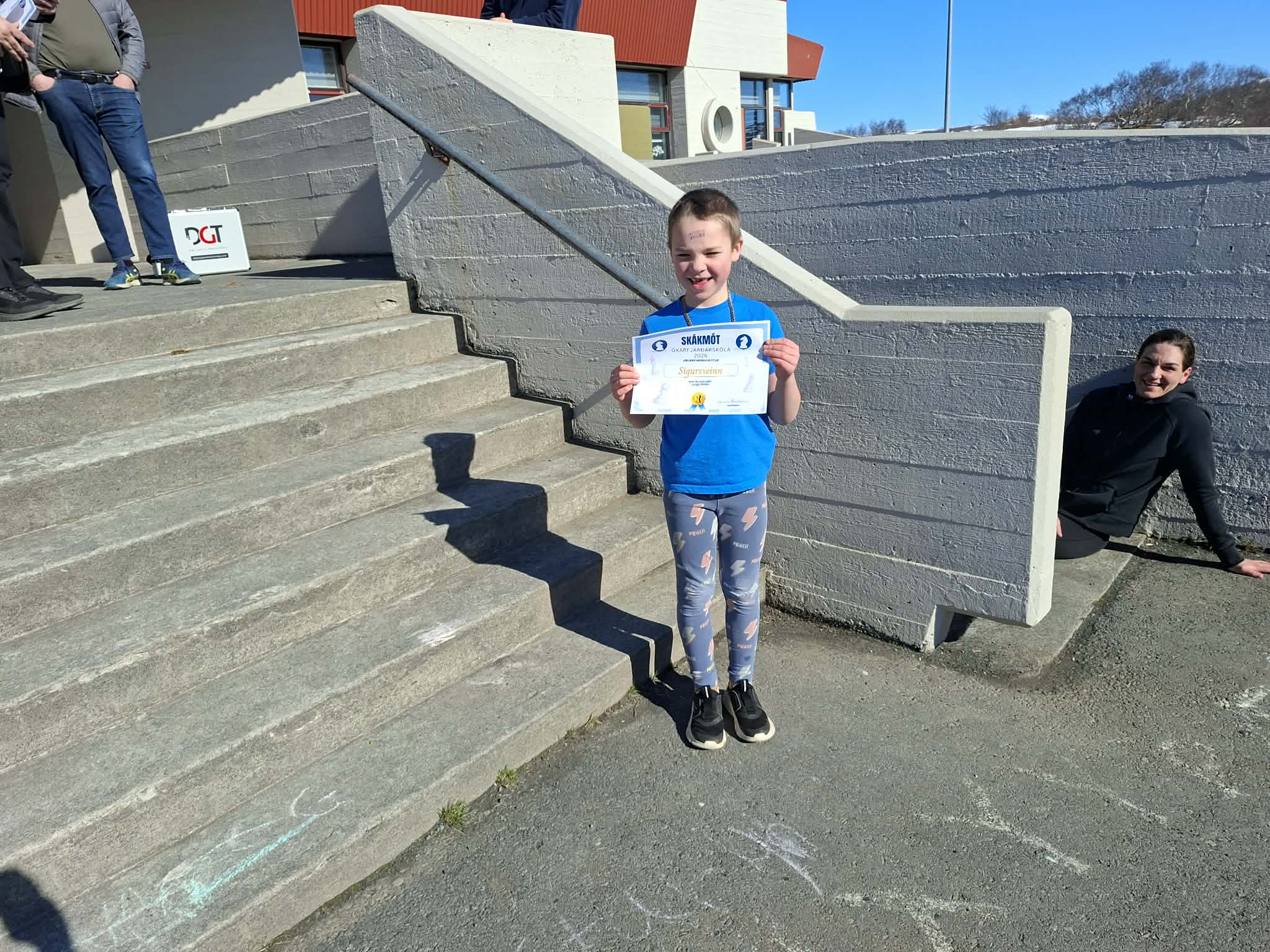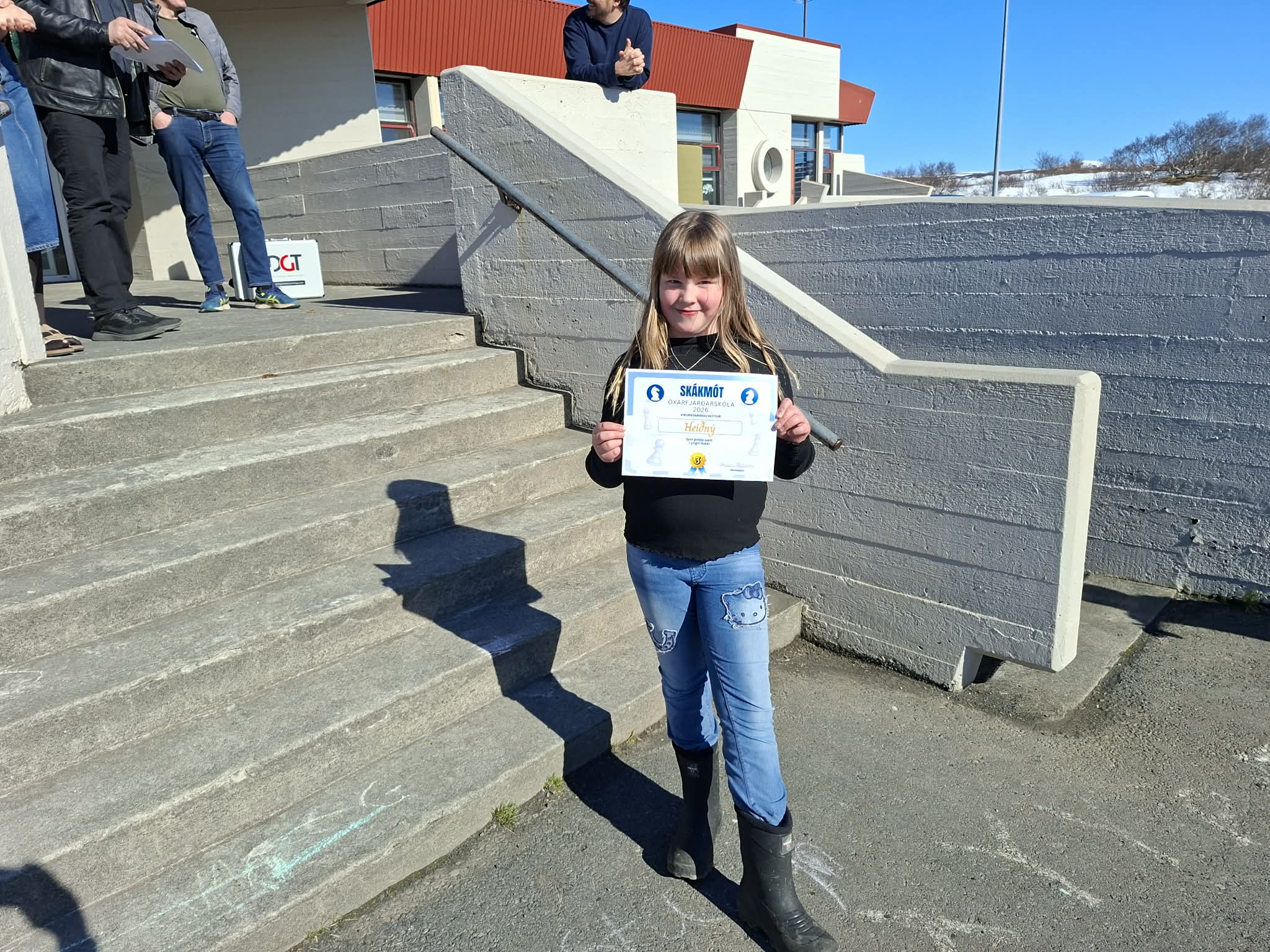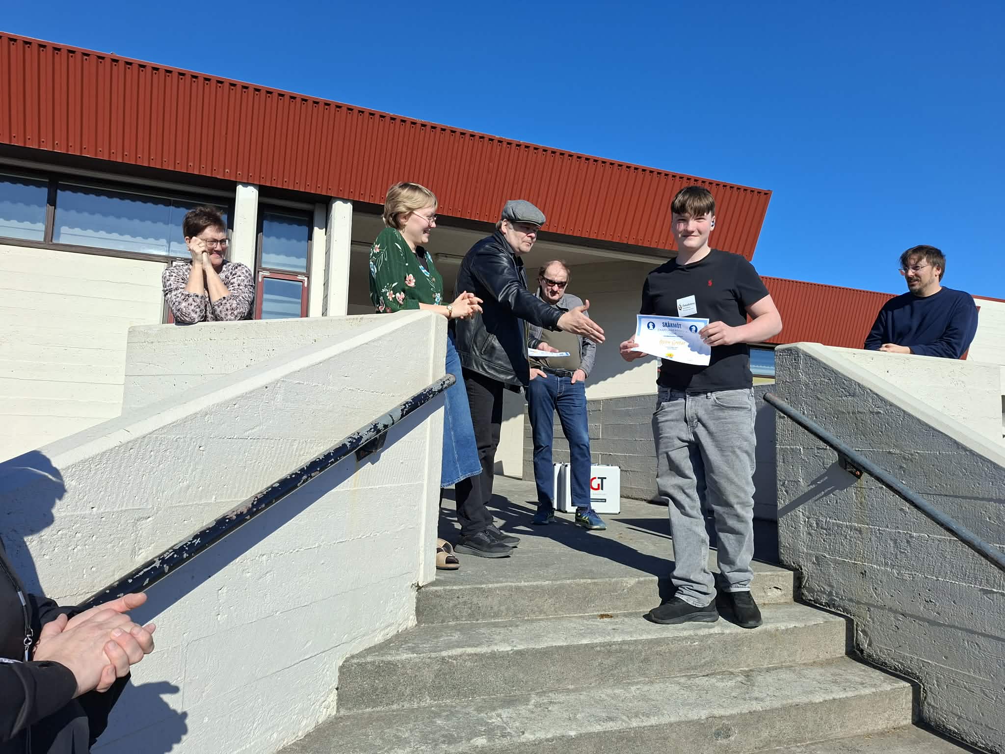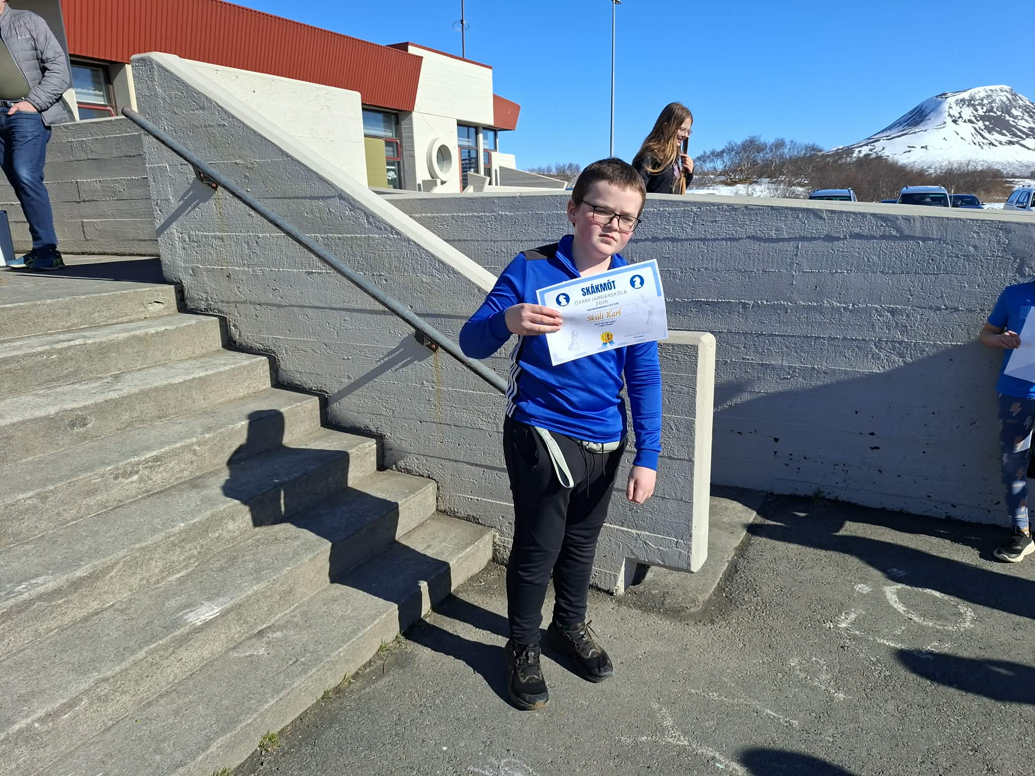 Verðlaunaafhending fór fram utandyra í sól og blíðu og voru veitt viðurkenningarskjöl í eldri og yngri flokkum.